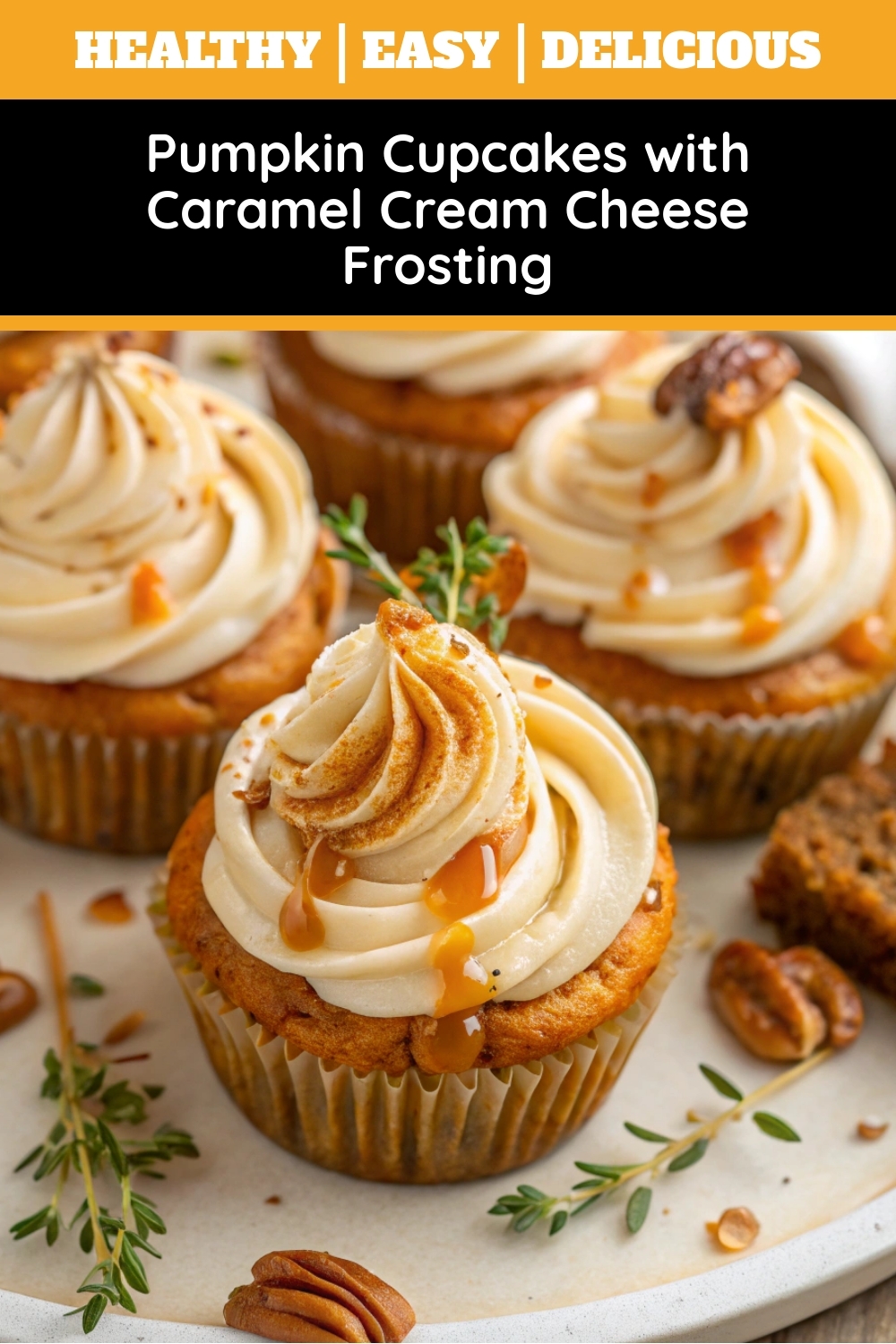 Present your Pumpkin Cupcakes with Caramel Cream Cheese Frosting as the star of any dessert table. For a beautiful finish, pipe the frosting using a large star tip to create elegant swirls. Immediately after, drizzle each one with a little extra caramel sauce and sprinkle with a pinch of sea salt or finely chopped pecans for a delightful crunch. Consequently, these autumnal treats shine at holiday gatherings, especially Thanksgiving and Halloween parties. Moreover, they make a charming and festive ending to a casual weeknight dinner or a standout feature at a weekend brunch.
