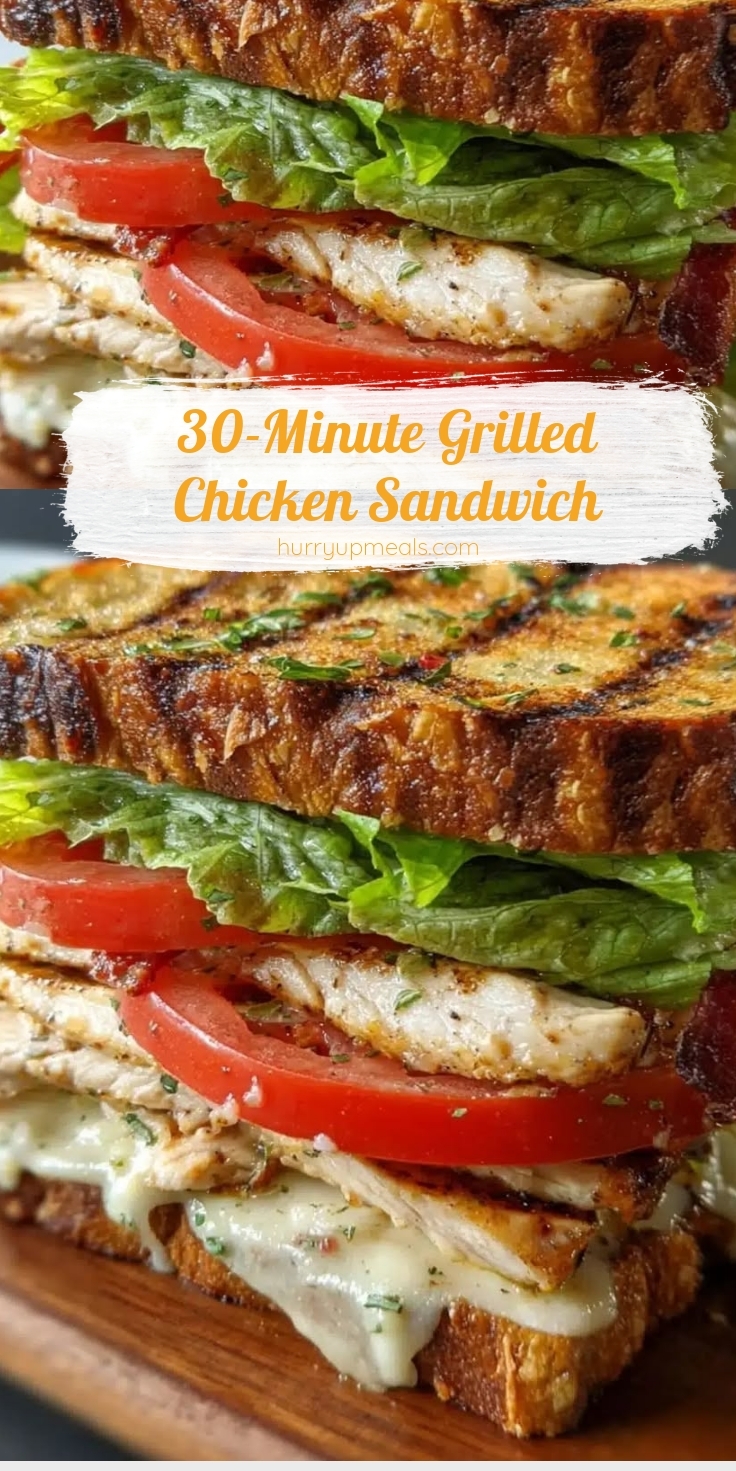 The 30-Minute Grilled Chicken Sandwich is a quick yet satisfying meal that combines smoky grilled chicken with fresh toppings and a soft bun. What makes it special? Unlike dry or bland chicken sandwiches, this version stays moist and packed with flavor, thanks to a quick marinade and high-heat grilling. Plus, it fits perfectly into our theme of fast, family-friendly meals that don’t sacrifice taste. If you love speedy dishes, you’ll adore our 15-Minute Pasta Recipes or our Quick Healthy Salads—both perfect pairings for a light, balanced meal.