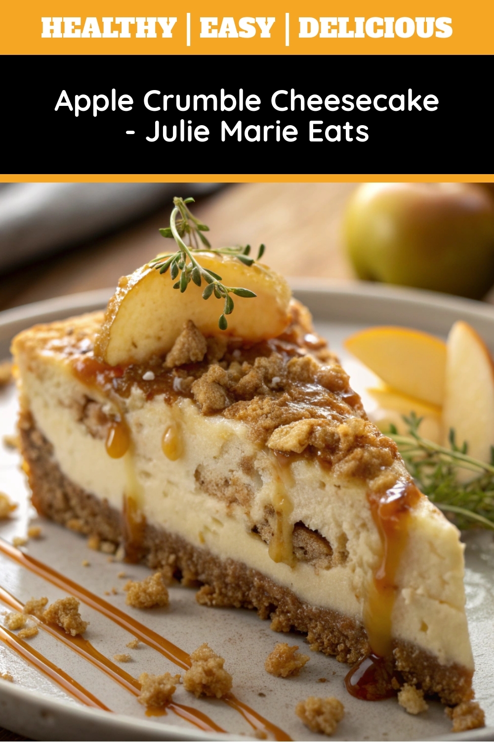 For the best flavor and texture that holds up during baking, use a firm, tart apple like Granny Smith. Their sharpness perfectly balances the sweetness of the cheesecake and crumble topping in this Apple Crumble Cheesecake – Julie Marie Eats recipe.