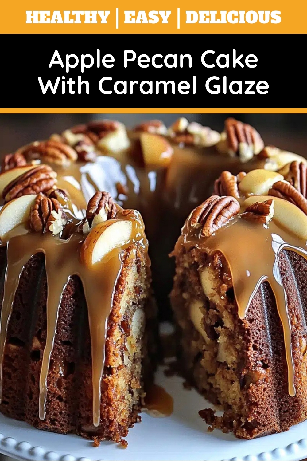 For a stunning presentation, serve each slice of Apple Pecan Cake With Caramel Glaze warm on a clean, white plate. This allows the rich caramel glaze to glisten beautifully. Drizzle extra caramel around the plate for a professional touch, and garnish with toasted pecans and a thin apple slice. This cake shines at autumn brunches or holiday dessert tables, yet it also suits casual family dinners. Its warm, inviting aroma makes any occasion feel special.