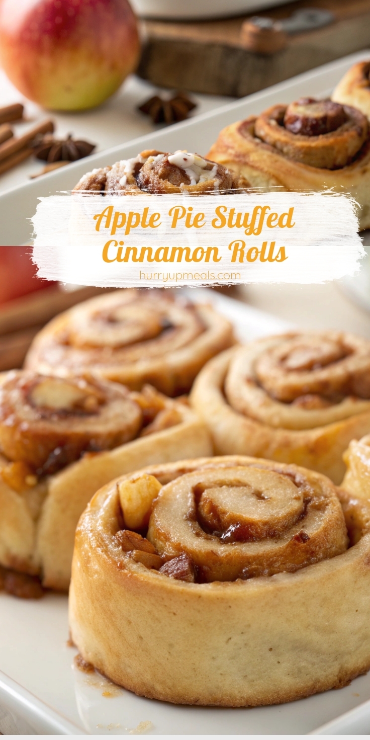 Soft, fluffy cinnamon rolls stuffed with a gooey apple pie filling made from cooked apples, brown sugar, cinnamon, and cornstarch, combining the best of apple pie and cinnamon rolls in one delicious treat.
