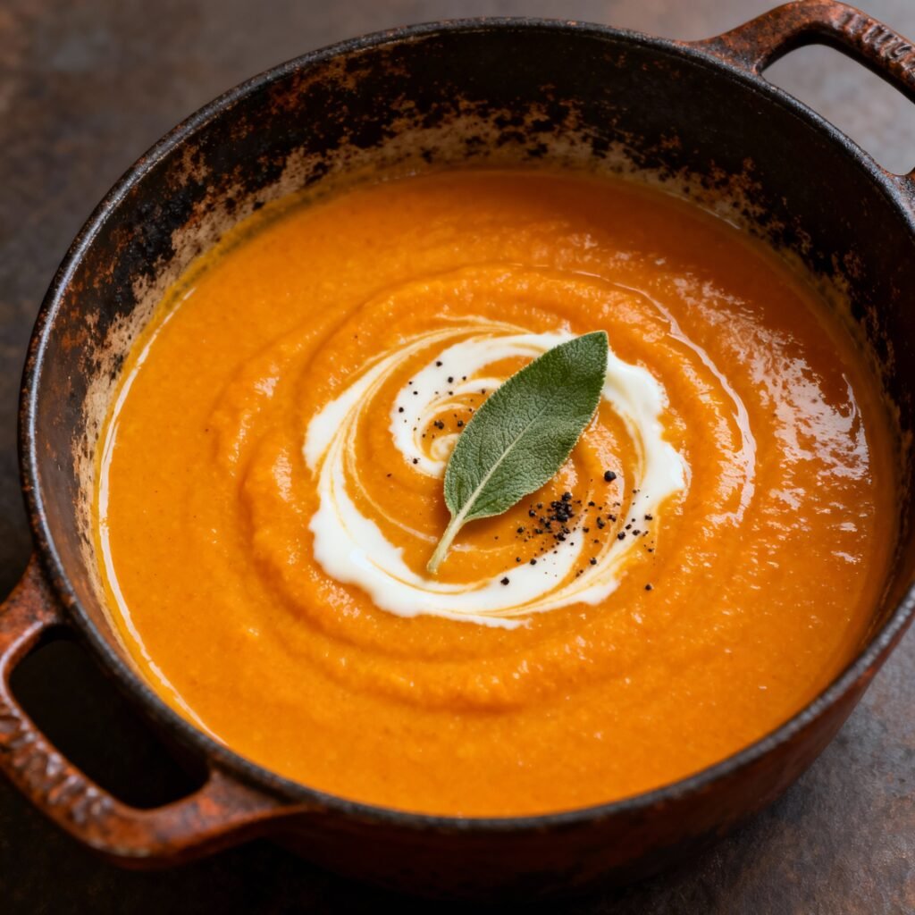 A hearty and comforting fall soup made in a Dutch oven, packed with seasonal vegetables and warm spices to celebrate the flavors of autumn.