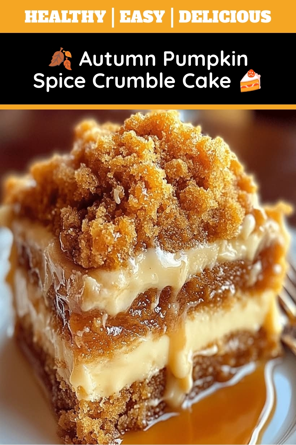 Serve this cake slightly warm or at room temperature. A scoop of vanilla ice cream or a dollop of whipped cream pairs perfectly with the warm spices, making your 🍂 Autumn Pumpkin Spice Crumble Cake 🍰 a perfect dessert.
