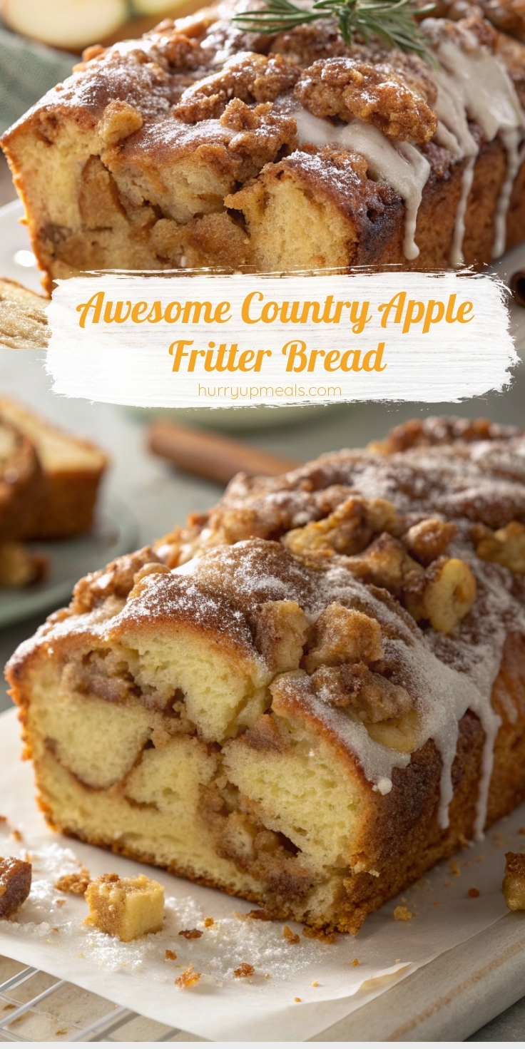 Awesome Country Apple Fritter Bread is essentially the best parts of a classic doughnut shop treat transformed into an easy quick bread. This recipe creates a moist, tender cinnamon-spiced loaf that is generously swirled and topped with a brown sugar glaze, fresh apples, and a delightful crumble. Its uniqueness comes from the layered approach because you get pockets of sweet cinnamon sugar and soft apple pieces in every single slice, making it far superior to a standard apple bread. This amazing dessert bread aligns perfectly with our mission of creating spectacular, yet surprisingly simple recipes that deliver huge flavor. If you adore apple desserts, you absolutely must try our classic Apple Pie Cupcakes. Furthermore, this loaf uses simple pantry staples, much like our popular One-Bowl Brownies, so you can whip it up without a special trip to the store. The process is straightforward, but the final result is absolutely breathtaking and guaranteed to become a new family favorite.
