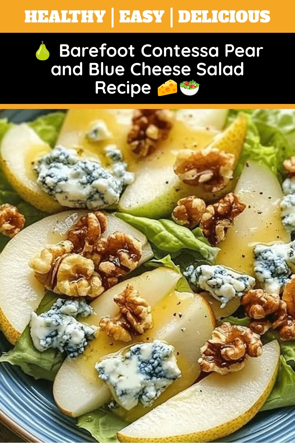 Drizzle the vinaigrette just before serving to keep everything crisp and fresh. Add a crack of black pepper and a few extra walnut halves for a gorgeous finish. This elegant Barefoot Contessa Pear and Blue Cheese Salad Recipe is perfect for a holiday starter, a sophisticated brunch centerpiece, or a light yet impressive casual dinner.