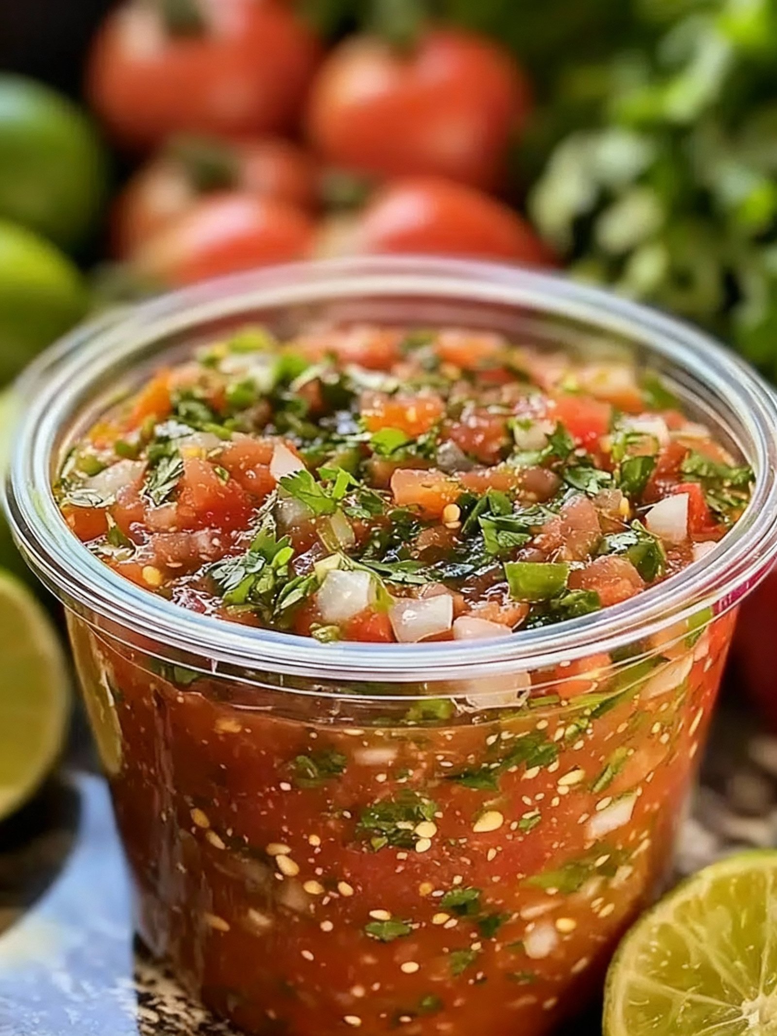 A fresh and flavorful homemade salsa made with ripe tomatoes, onions, jalapeños, cilantro, and lime juice. Perfect for dipping or topping your favorite Mexican dishes.