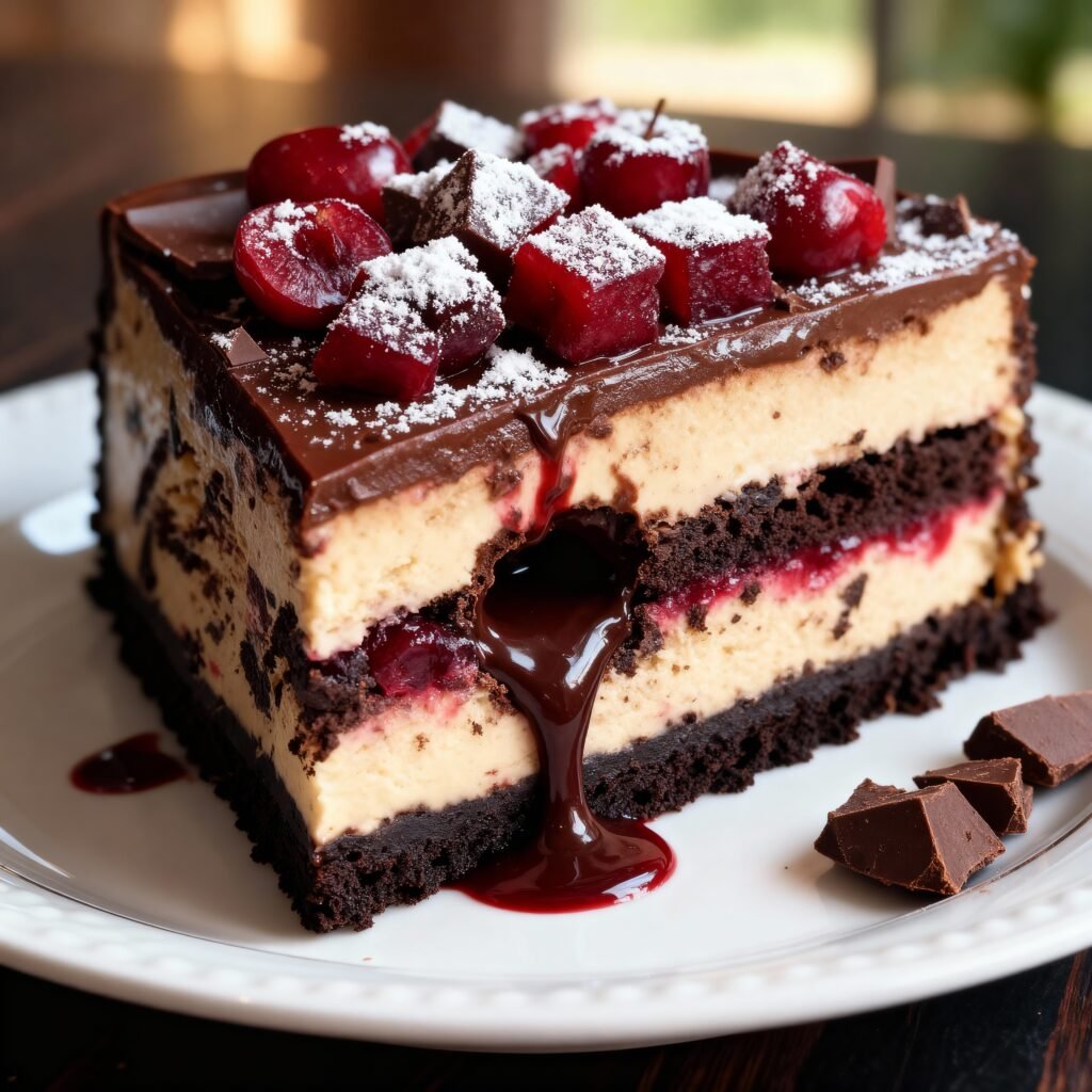 This decadent Black Forest Cheesecake combines rich chocolate, creamy cheesecake, and tart cherries for an unforgettable dessert experience that balances sweetness with deep, complex flavors.