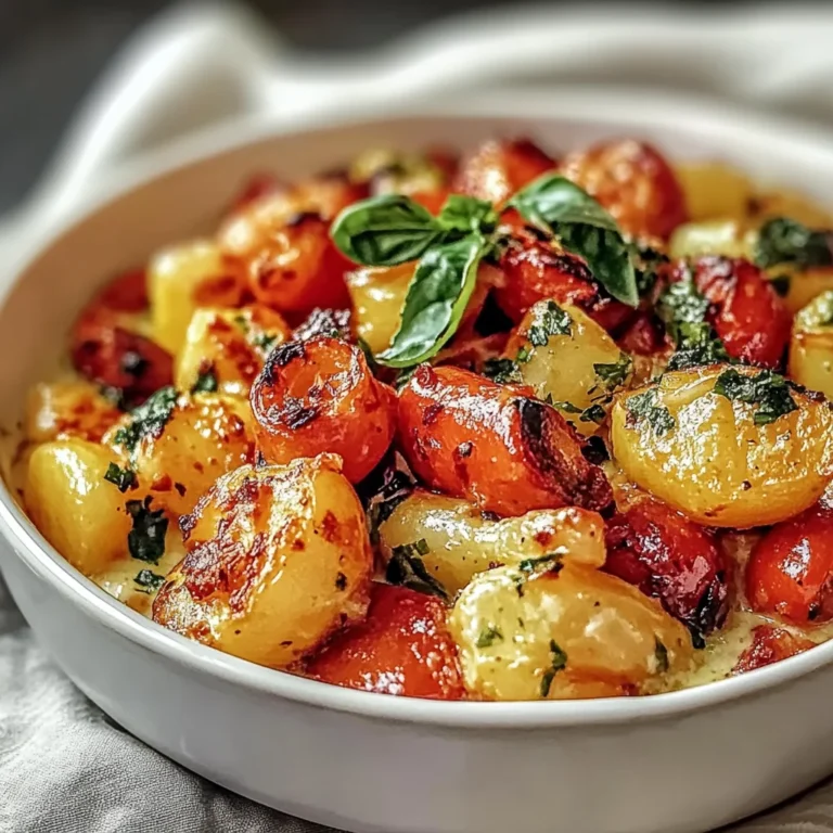 Once the roasted vegetables are done, carefully add them to the skillet with the creamy sauce. Gently fold everything together until the vegetables are evenly coated. Transfer your finished Cheesy Marry Me Roasted Vegetable Medley to a serving dish and top generously with the chopped fresh basil for a bright, fresh finish.