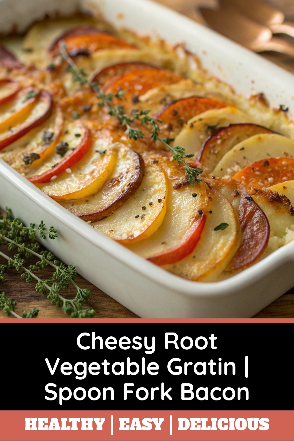 Always slice your vegetables to a uniform thickness, about 1/8-inch, because this guarantees they will cook evenly and become perfectly tender. Use a mandoline slicer for the most consistent results, although a sharp knife and a steady hand will also work well. Generously grease your baking dish with butter before assembling the gratin, so the cheesy edges become beautifully crisp and golden brown without sticking. For the ultimate flavor and texture in your Cheesy Root Vegetable Gratin | Spoon Fork Bacon, always use a combination of freshly grated cheeses, since pre-shredded varieties contain anti-caking agents that prevent proper melting.