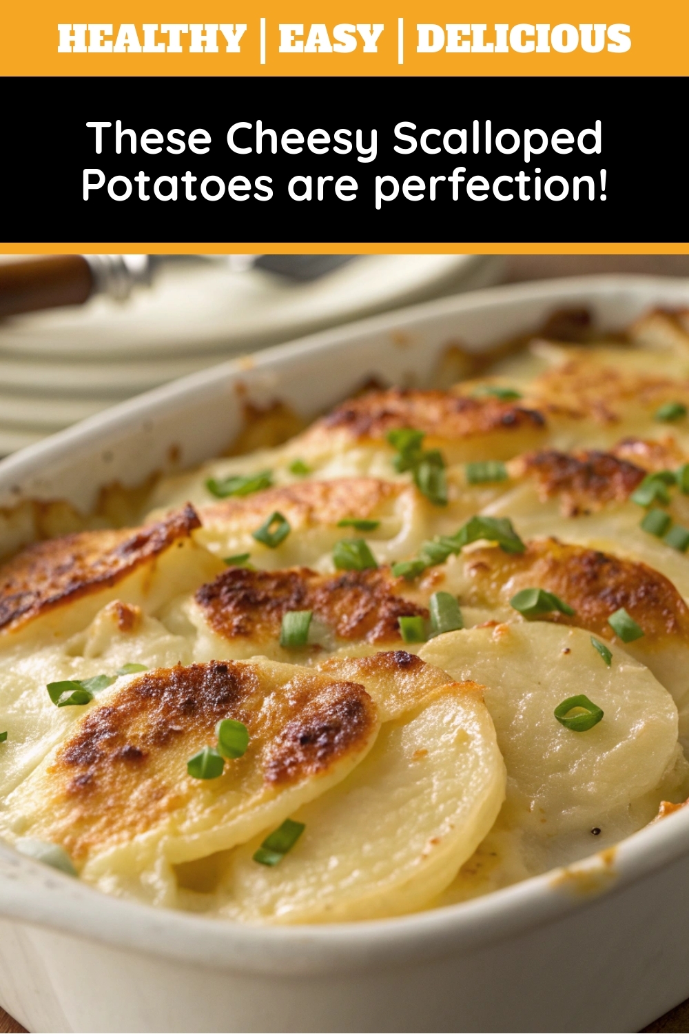 These Cheesy Scalloped Potatoes are perfection! because they offer a masterclass in contrasting textures. Each forkful delivers a tender, almost melt-in-your-mouth slice of potato, while the top layer bakes into a wonderfully crisp and golden-brown crust. A rich and luxuriously creamy sauce, fragrant with garlic and sweet onions, binds every layer together. This sauce soaks into the potatoes during baking, making them incredibly flavorful and soft. The star of the show, however, is the cheese. It provides deep, savory notes and a delightful stringy pull with every serving. The overall experience is deeply comforting and savory, with the aromatic scent of herbs filling your kitchen as it bakes. These Cheesy Scalloped Potatoes are perfection! for anyone craving a homestyle side dish that feels both elegant and utterly satisfying.