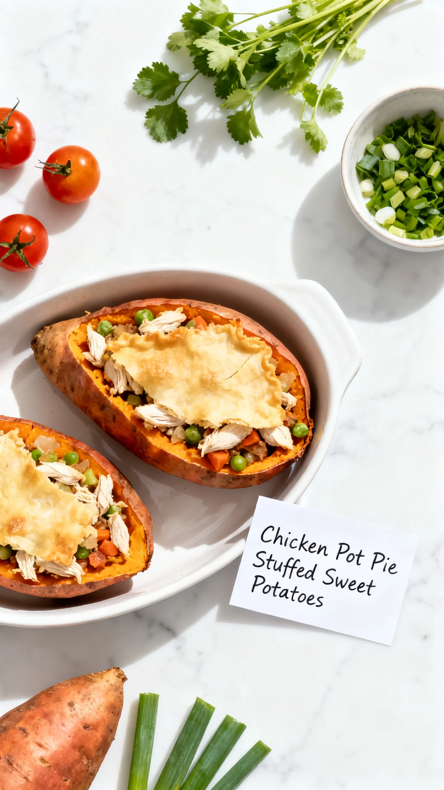 Context: This method is about 20% faster than making a traditional chicken pot pie from scratch, as you skip the steps of making or chilling a pastry crust. It’s a perfect, satisfying option for a busy weeknight meal. The sweet potatoes can also be roasted a day ahead, refrigerated, and then stuffed and baked just before serving, making it a great make-ahead option for meal prep.