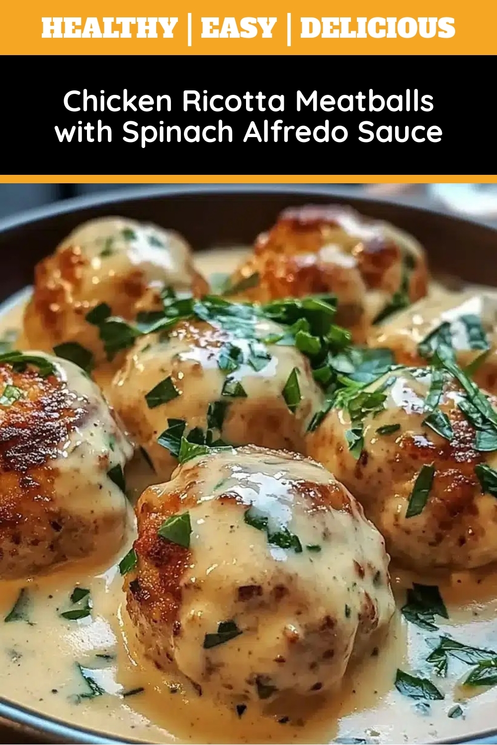 Best Chicken Ricotta Meatballs with Spinach Alfredo Sauce
