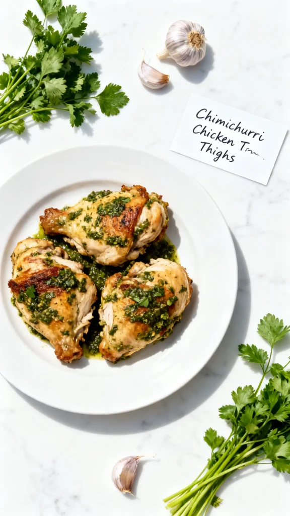 Transfer the cooked chimichurri chicken to a clean plate or cutting board and let them rest for 5 minutes. This allows the juices to redistribute, ensuring every bite is moist. Serve the thighs drizzled with the reserved fresh chimichurri sauce for an extra burst of herby brightness.