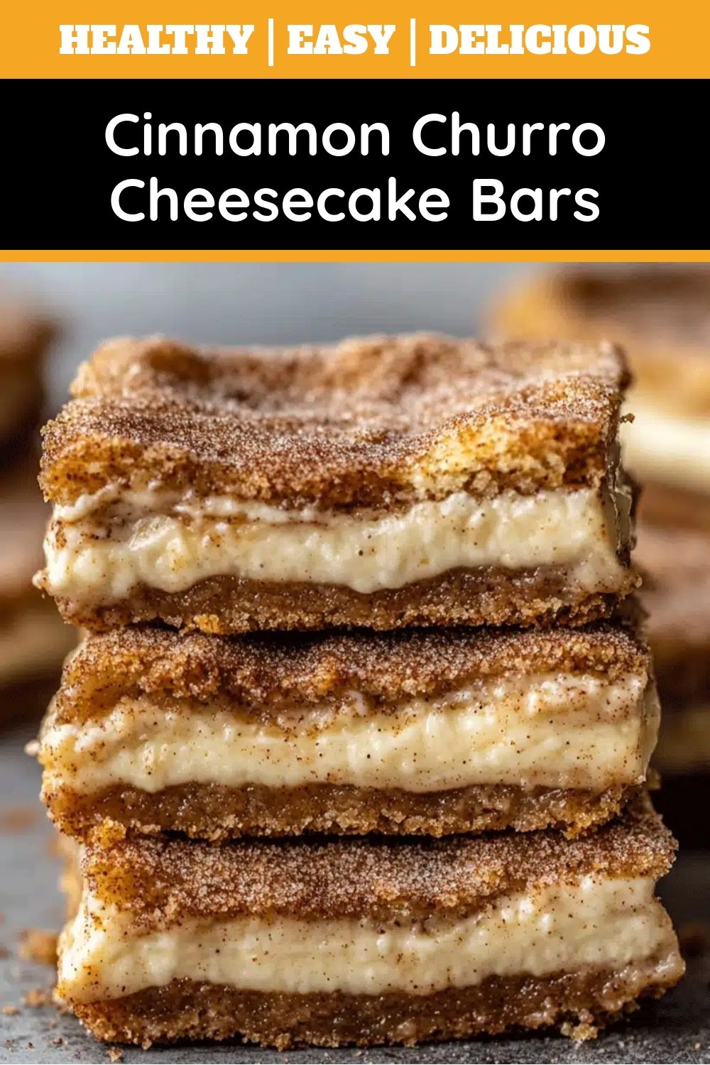A delicious fusion of churros and cheesecake in bar form, with a cinnamon sugar crust and creamy filling.
