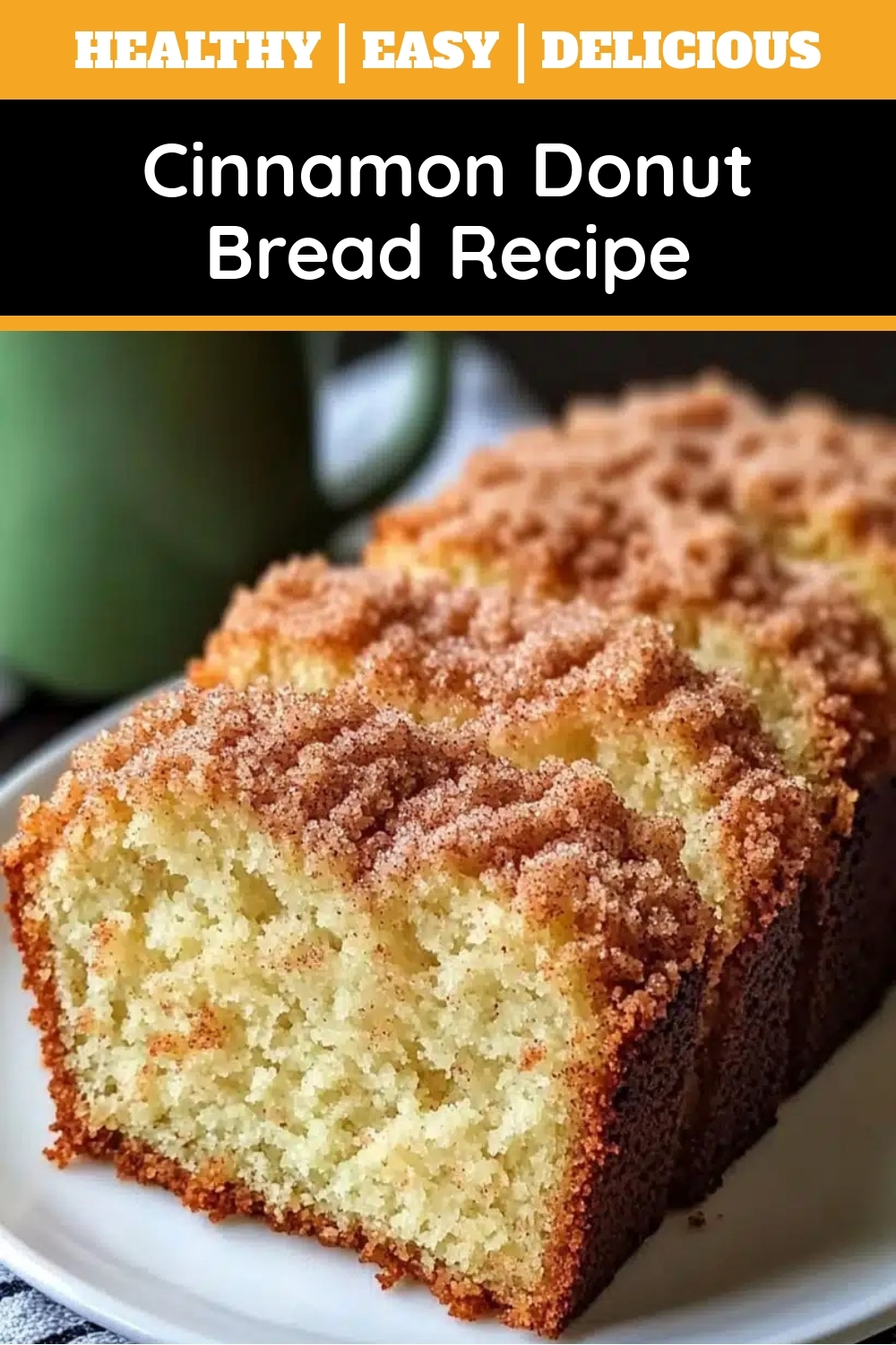 A deliciously moist bread with the flavors of a cinnamon sugar donut, perfect for breakfast or dessert.