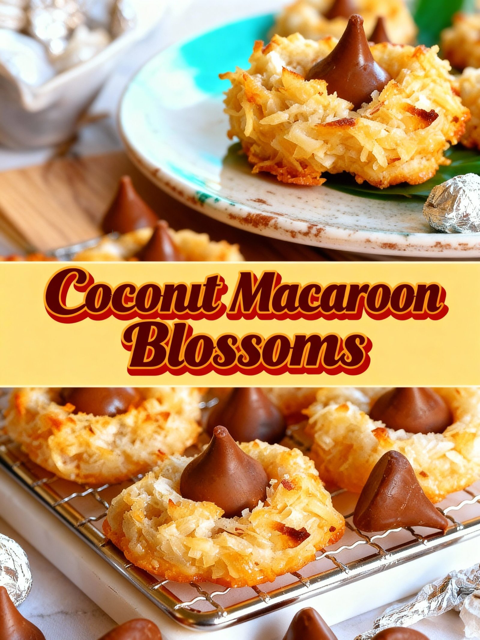 These Coconut Macaroon Blossoms deliver chewy, coconut-packed texture with sweet chocolate centers that melt in your mouth.
