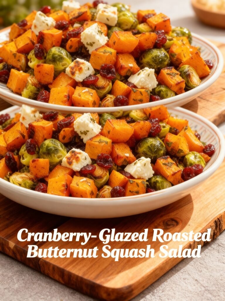 This vibrant Cranberry-Glazed Roasted Butternut Squash Salad combines sweet roasted squash with tangy cranberry glaze, crunchy nuts, and fresh greens for a perfect balance of flavors and textures.