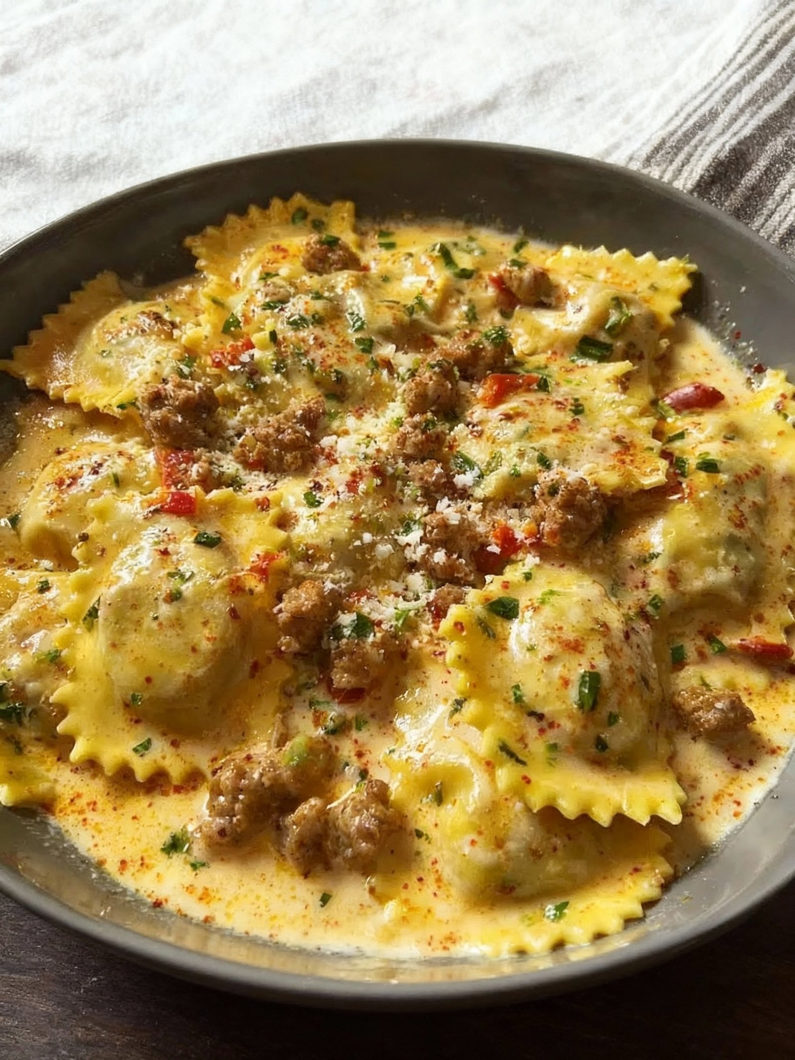 Creamy Cajun Sausage Ravioli