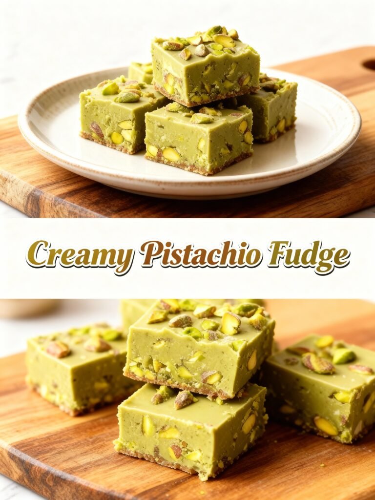 This Creamy Pistachio Fudge delivers a rich, velvety texture with the perfect balance of sweet white chocolate and nutty pistachio flavor, finished with a decadent dark chocolate swirl.