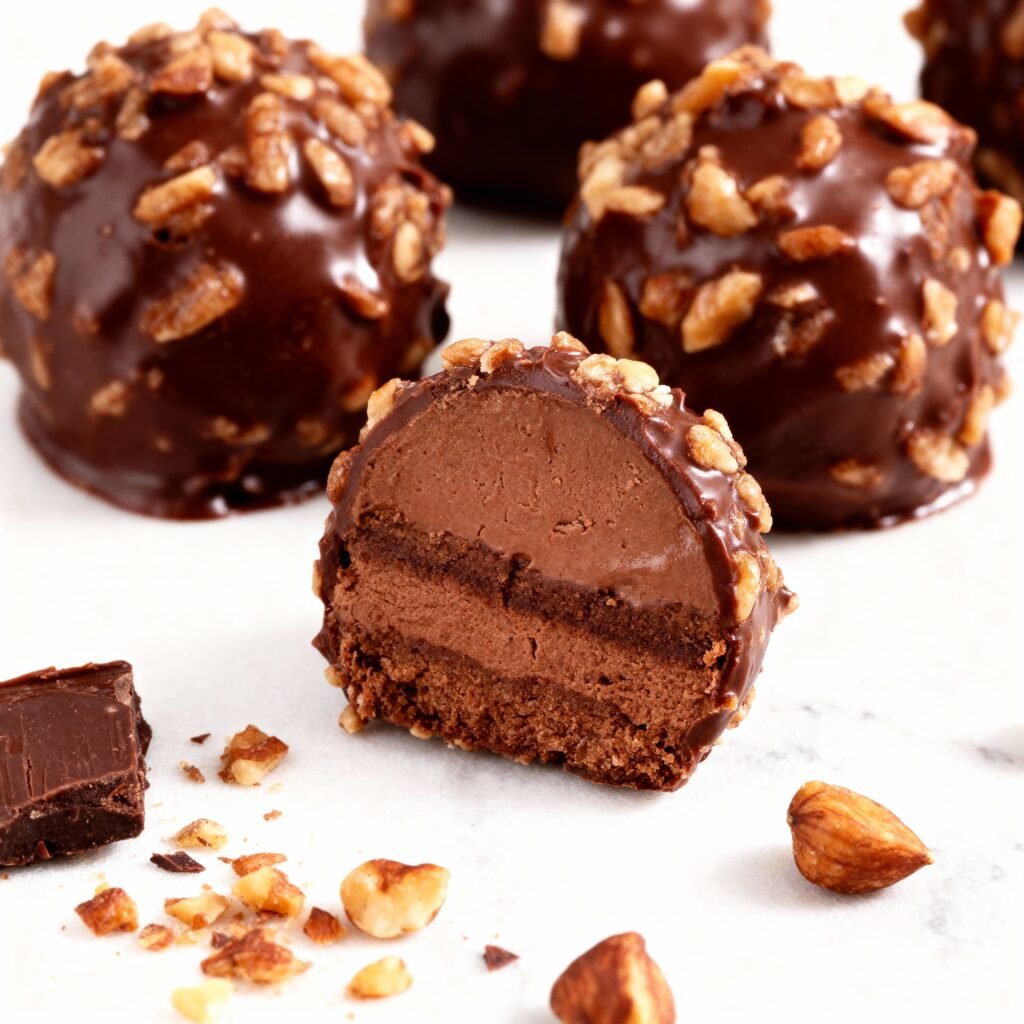 - Reheat: If the Crunchy Chocolate Hazelnut Truffles become too firm, let them sit at room temperature for 10–15 minutes before serving. Do not microwave, as this can melt the chocolate coating.