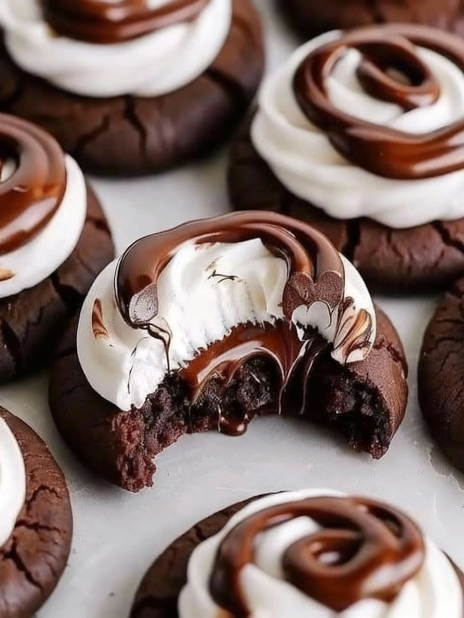 Chewy, gooey chocolate cookies loaded with mini marshmallows and chocolate chips, featuring cocoa powder in the dough and toasty marshmallows on top.