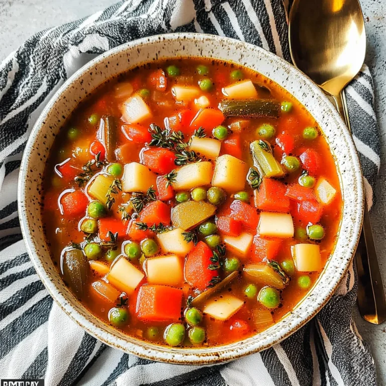 This simple vegetable soup gets its rich, savory base from fresh aromatics and the natural sweetness of seasonal vegetables. Using a good-quality vegetable broth is the key to building a flavorful foundation without meat.
