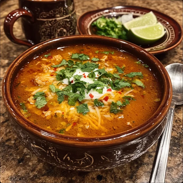 Taste the soup and adjust the salt or seasoning if needed. Ladle the hot soup into bowls and garnish generously with chopped cilantro. Serve immediately with your choice of optional toppings like avocado, shredded cheese, a dollop of sour cream, tortilla chips, diced red onion, sliced jalapeno, and a squeeze of fresh lime juice.