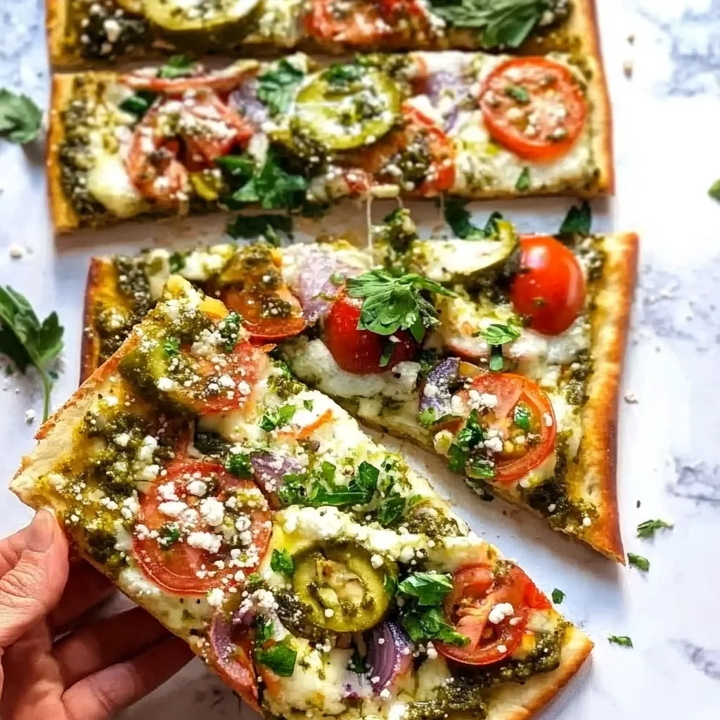 - Use a whole-wheat or cauliflower flatbread — Increases fiber content or lowers carbs for a lighter Mediterranean pizza base.
