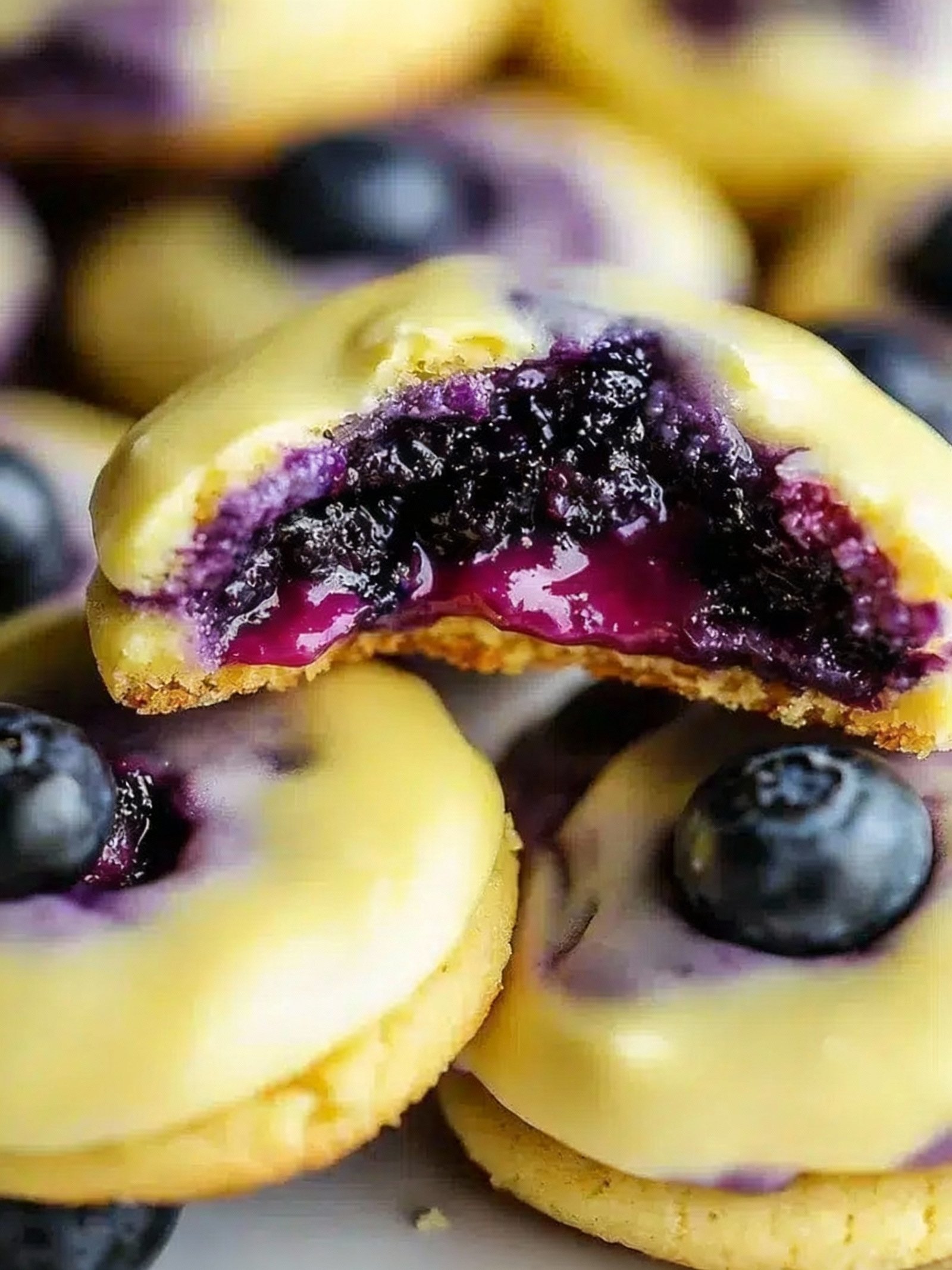 For best results, use fresh or frozen blueberries that are still frozen when folded into the dough to prevent them from breaking. The cookies are soft and chewy with a bright lemon flavor, perfect for serving at elegant occasions.