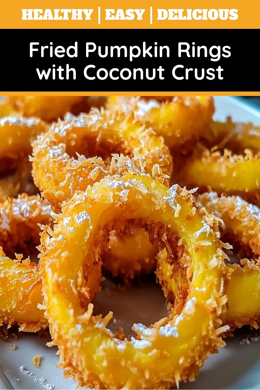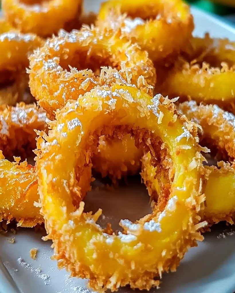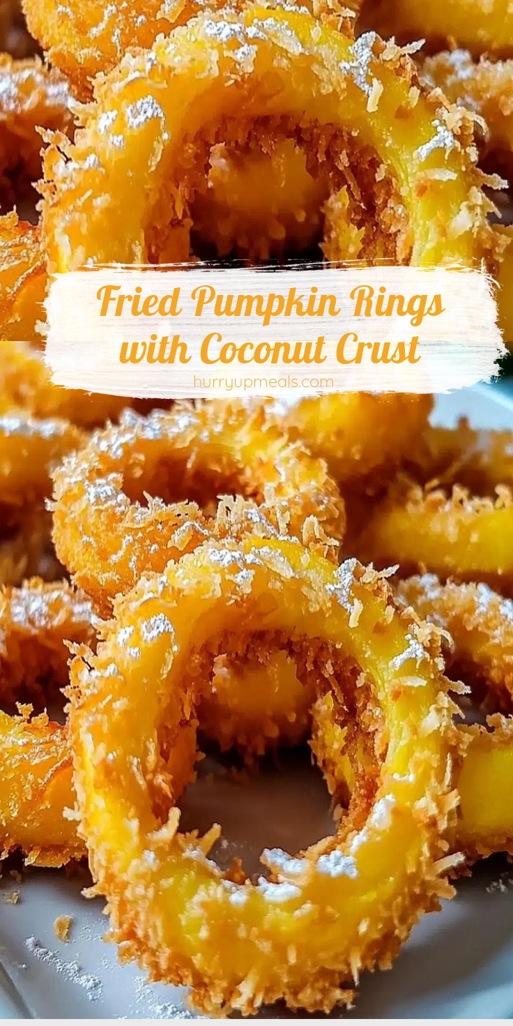 Crispy, golden pumpkin rings coated in a sweet coconut crust, perfect as an appetizer or snack.