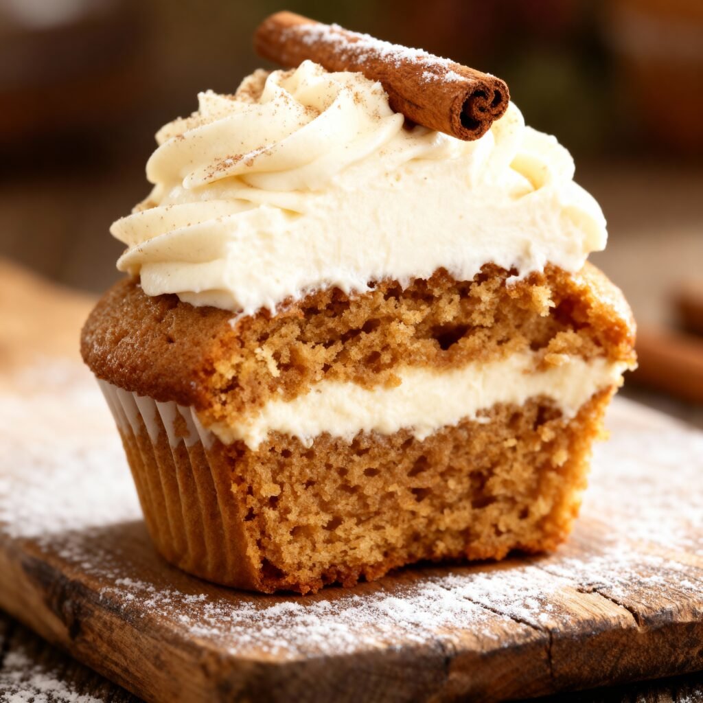 Once cooled, frost the cupcakes using a piping bag with a star tip or a simple offset spatula. For a festive finish, you can sprinkle with a little extra cinnamon or decorate with mini gingerbread man cookies or cinnamon red hot candies.