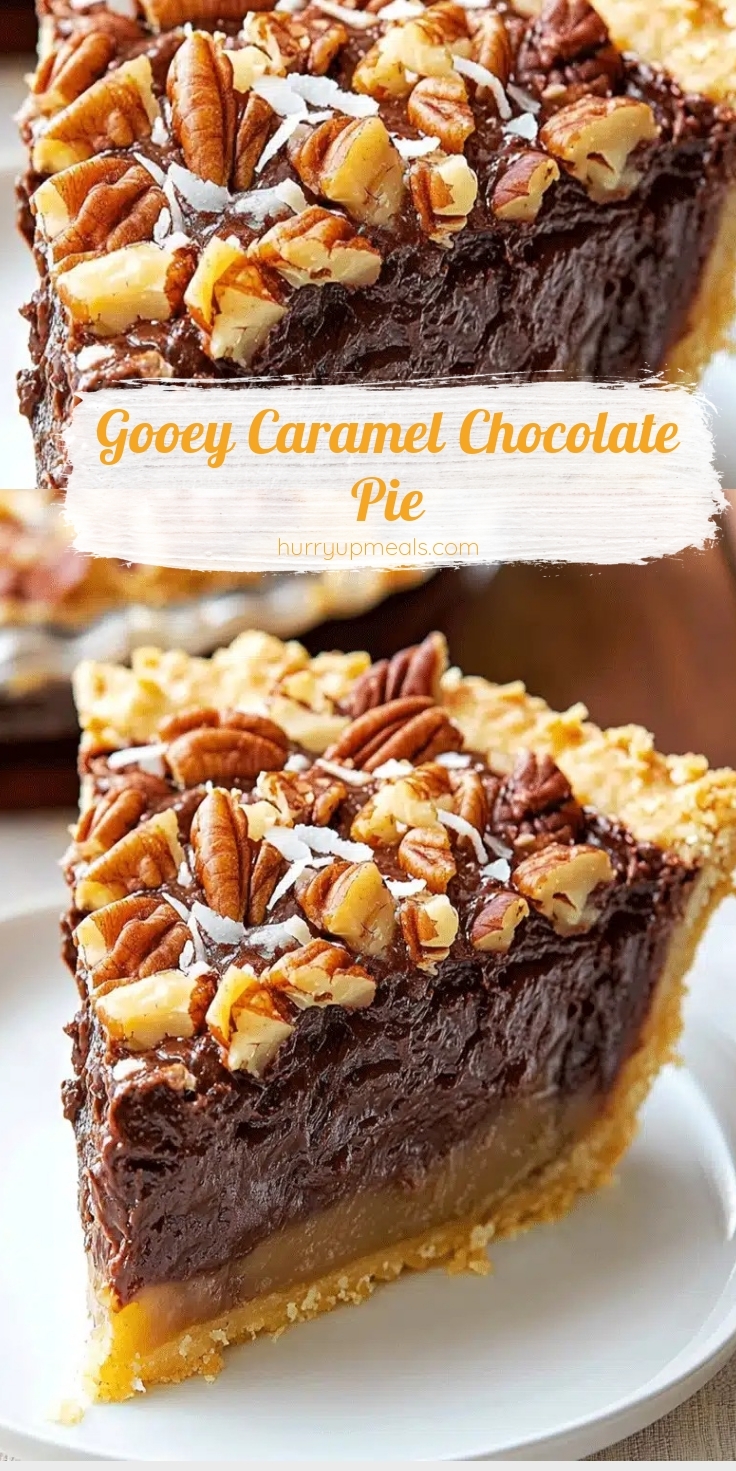Gooey Caramel Chocolate Pie is a decadent symphony of flavors and textures that delights every bite. The rich, velvety chocolate filling melts effortlessly on your tongue, while the luscious caramel swirls add a buttery sweetness that lingers. Each forkful delivers a perfect contrast—creamy from the silky ganache, chewy from the caramel, and crisp from the buttery crust. The aroma alone is intoxicating, with deep cocoa notes mingling with the warm, toasty scent of caramelized sugar. Even though the pie is indulgent, the balance of flavors keeps it from feeling overly heavy. The chocolate provides a bittersweet depth, while the caramel introduces a smooth, almost floral sweetness. When you take a bite, the textures play harmoniously—the tender crust crumbles slightly, giving way to the gooey center that oozes with every slice. For an extra layer of luxury, a sprinkle of flaky sea salt enhances the caramel, making the Gooey Caramel Chocolate Pie utterly irresistible.