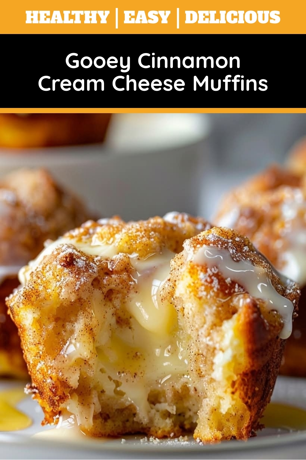 Gooey Cinnamon Cream Cheese Muffins are a symphony of flavors and textures that delight every bite. The moment you pull them from the oven, the warm, fragrant aroma of cinnamon and brown sugar fills the air, promising a cozy treat. When you break one open, the tender crumb reveals a luscious, creamy center of melted cream cheese that oozes with every bite. The muffin itself is soft and airy, while the cinnamon-sugar swirl adds a slight chewiness for contrast. Each mouthful balances rich, buttery notes with the gentle spice of cinnamon, creating a harmony that feels indulgent yet comforting. The cream cheese filling cools the warmth of the muffin, so every bite feels perfectly balanced. Even the edges offer a subtle crispness, adding just enough texture to keep things interesting. Whether enjoyed fresh from the oven or slightly cooled, Gooey Cinnamon Cream Cheese Muffins deliver a sensory experience that’s impossible to resist.