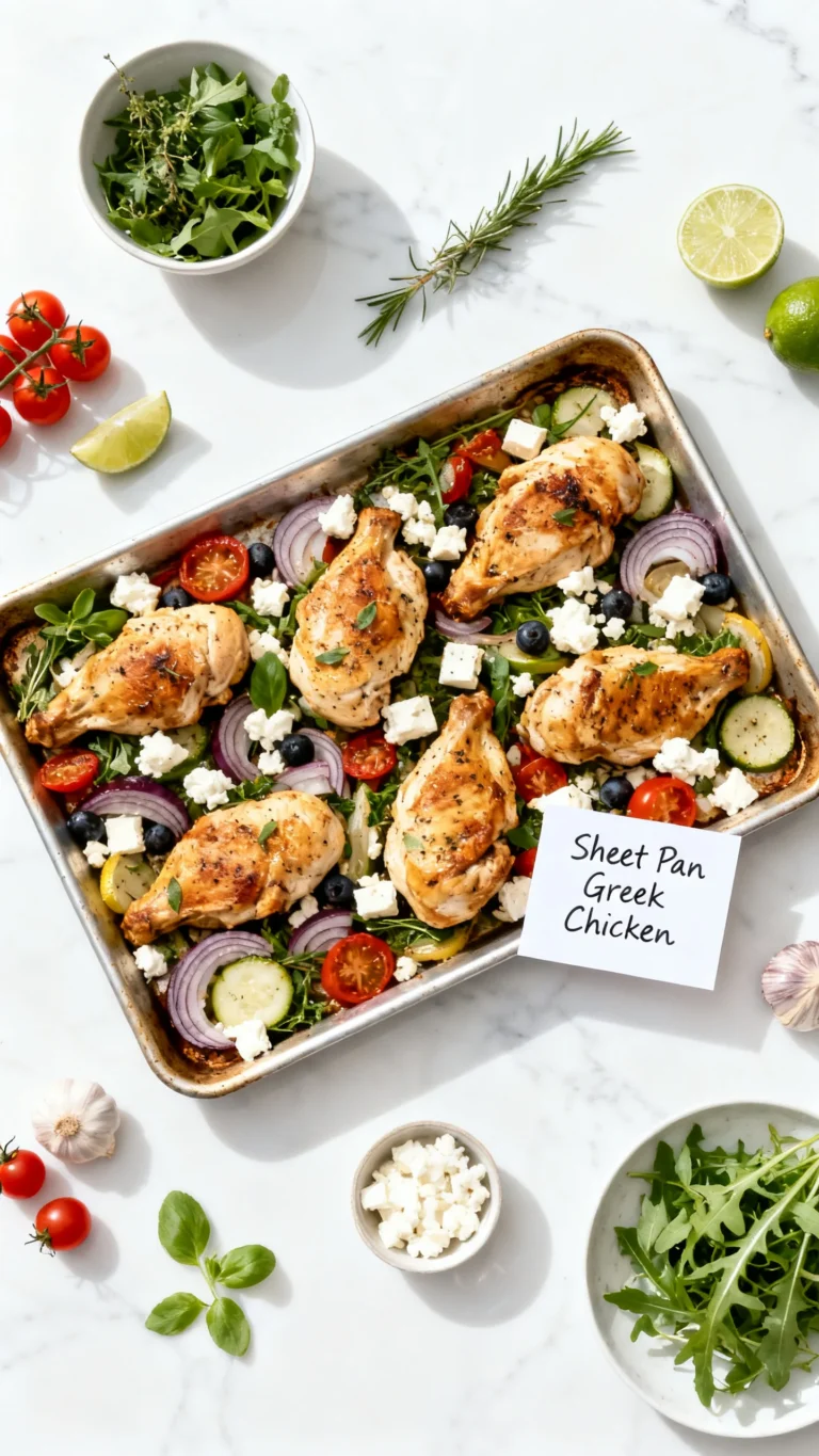 Context: This Sheet Pan Greek Chicken comes together about 25% faster than stovetop-and-oven methods because everything roasts simultaneously on one tray. Perfect for busy weeknights when you need a complete, balanced dinner without multiple pots or constant attention. The hands-off cook time lets you prepare a side or set the table while dinner finishes.