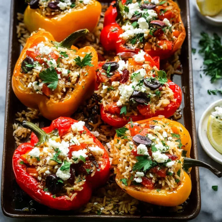 The vibrant colors and aromatic herbs of this Greek-Style Stuffed Peppers with Rice recipe bring a taste of the Mediterranean to your table. I’ve perfected this version through extensive testing to ensure a perfect balance of tangy lemon, savory olives, and creamy feta in every bite. It’s a satisfying, one-pan meal that’s as beautiful as it is delicious.