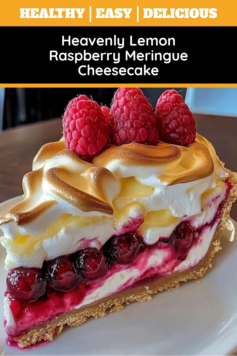 Heavenly Lemon Raspberry Meringue Cheesecake is a symphony of flavors and textures that delight every bite. The creamy, velvety cheesecake layer melts on your tongue, while the bright lemon zest cuts through the richness with a tangy freshness. Juicy raspberries burst with sweetness, adding a fruity contrast that balances the dessert perfectly. The crisp, buttery graham cracker crust provides a satisfying crunch, so each forkful offers a mix of soft and firm. On top, the airy meringue adds a light, fluffy texture, toasted to golden perfection for a subtle caramelized note. Fragrant vanilla and a hint of citrus elevate the aroma, making every slice irresistible. Because the ingredients harmonize so well, Heavenly Lemon Raspberry Meringue Cheesecake feels indulgent yet refreshing, ideal for any occasion.