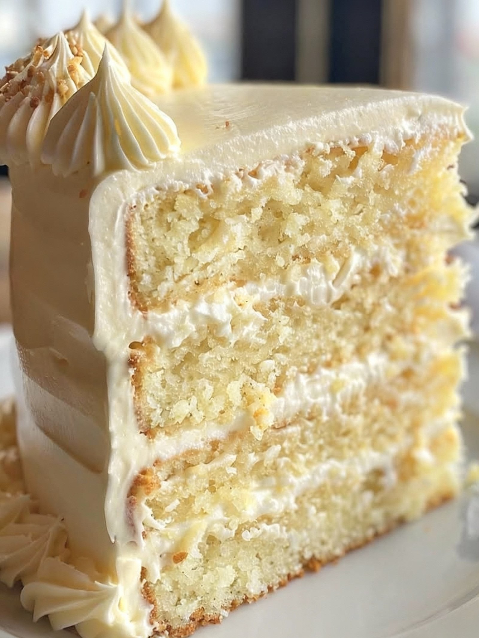 Place one cake layer on your serving plate. Spread a generous layer of frosting over the top. Add the second layer and frost the top and sides. Garnish with white chocolate shavings or pineapple pieces if desired. Refrigerate for at least 30 minutes before slicing to set the frosting.