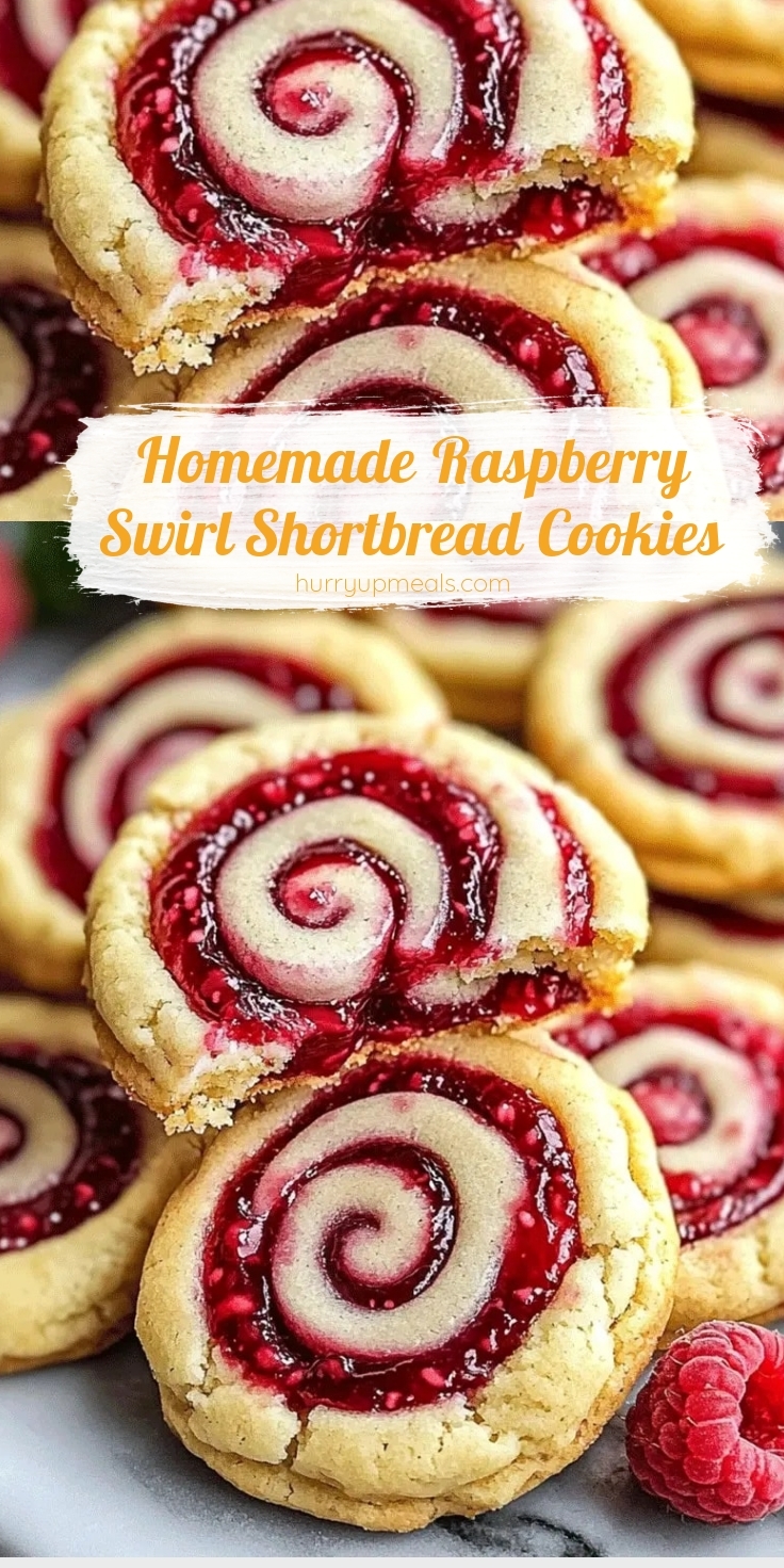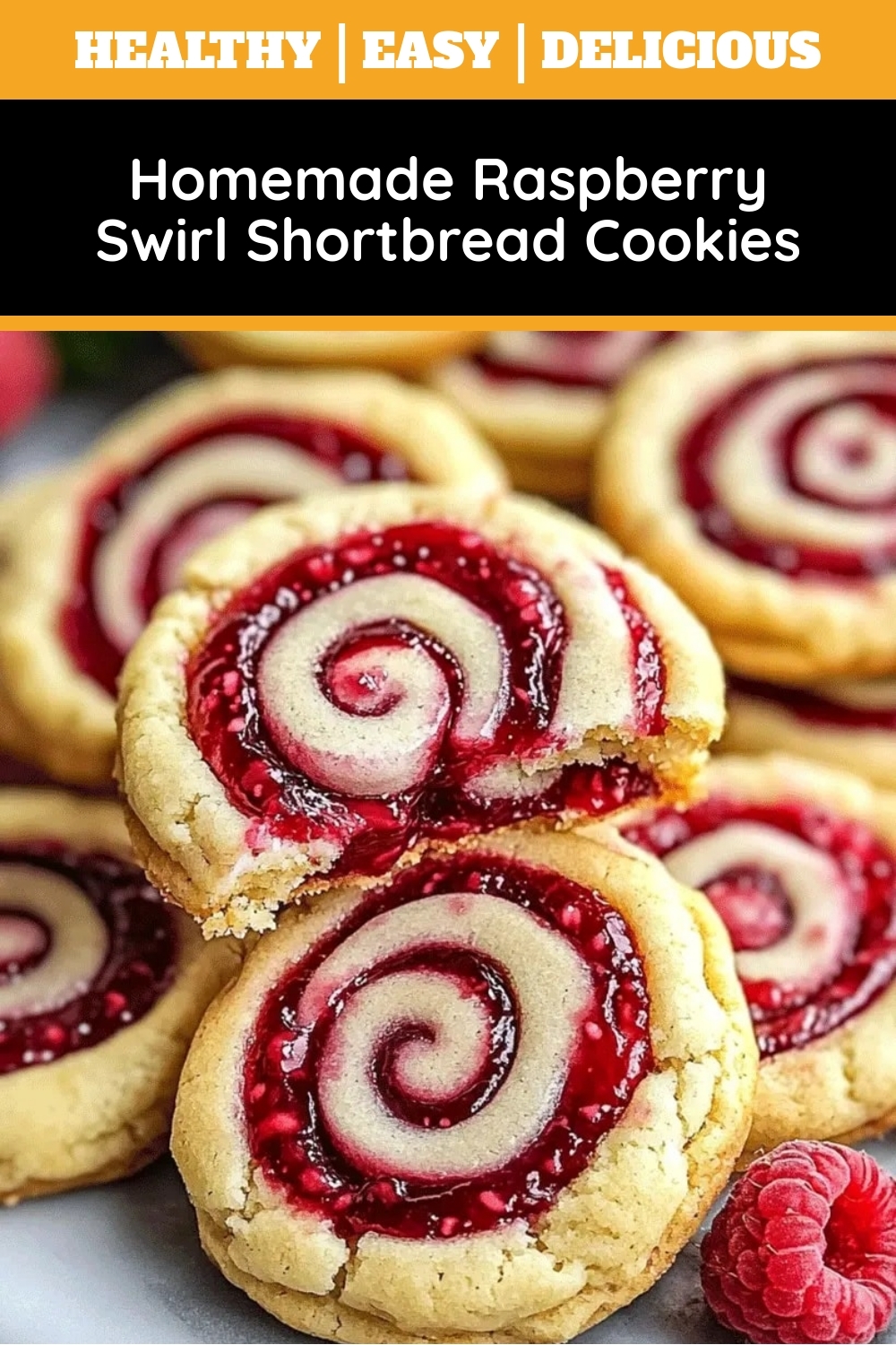 Buttery shortbread cookies swirled with sweet raspberry jam for a delightful treat.