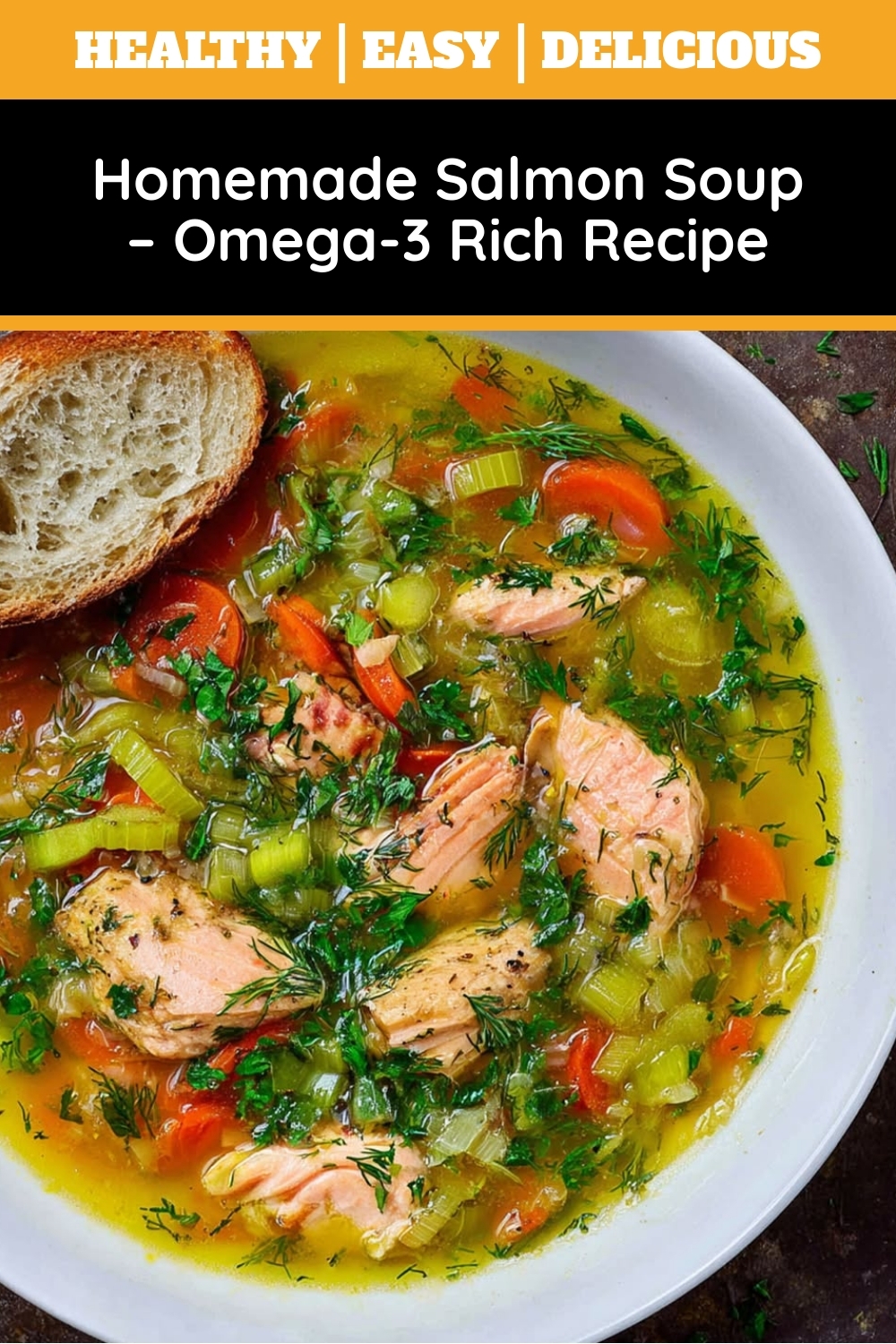 A nourishing and flavorful salmon soup packed with omega-3 fatty acids, fresh vegetables, and aromatic herbs.