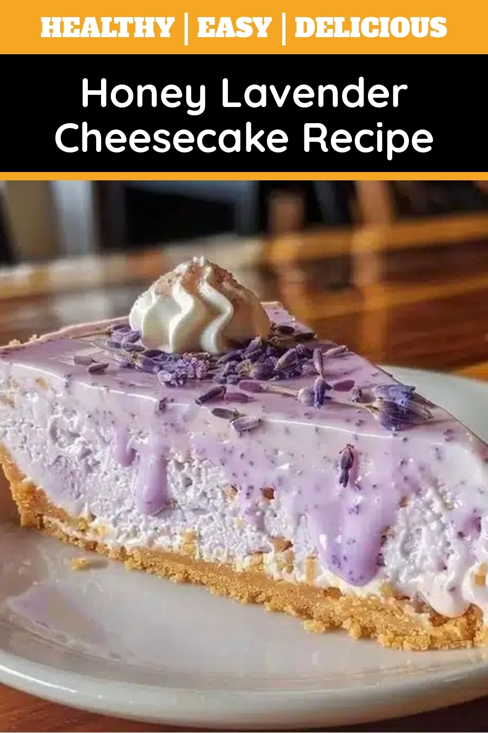 A creamy and floral cheesecake infused with honey and lavender, perfect for a light and elegant dessert.