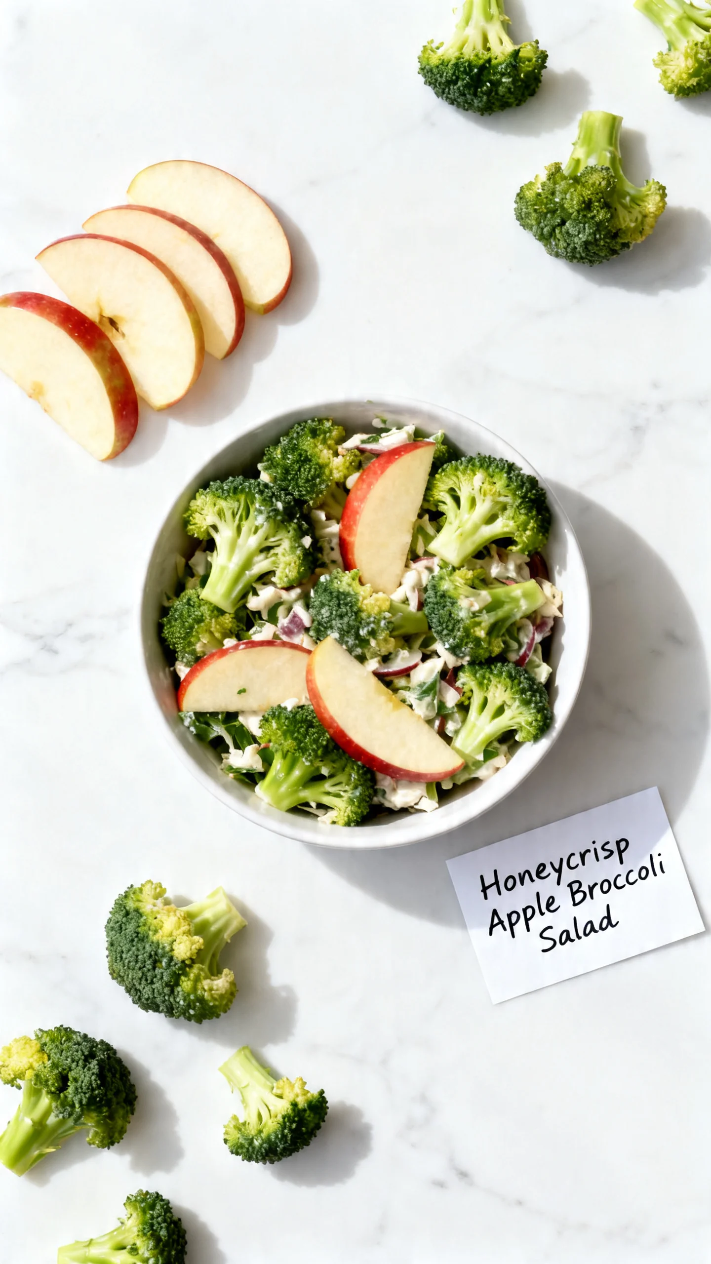 This Honeycrisp Apple Broccoli Salad is a guaranteed crowd-pleaser that stays crisp for hours, making it the ultimate stress-free dish for any gathering. For another refreshing salad that holds up well, try this Refreshing Broccoli Salad with Apples and Cranberries Recipe. Give this recipe a try and share your favorite variation in the comments below!