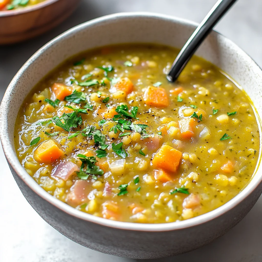 This classic split pea soup gets its rich, savory base from aromatic vegetables and smoked ham. Using a good-quality broth makes a significant difference in the final depth of flavor.
