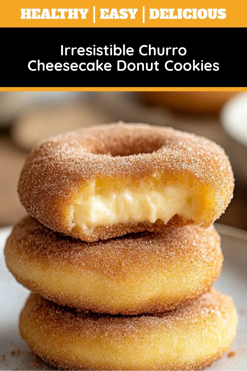 Consider serving them warm for an extra cozy and indulgent experience. Alternatively, you can plate them alongside a small bowl of melted chocolate or dulce de leche for dipping, which encourages a fun, interactive dessert moment. Ultimately, no matter the occasion, these Irresistible Churro Cheesecake Donut Cookies promise to be the star of the show.