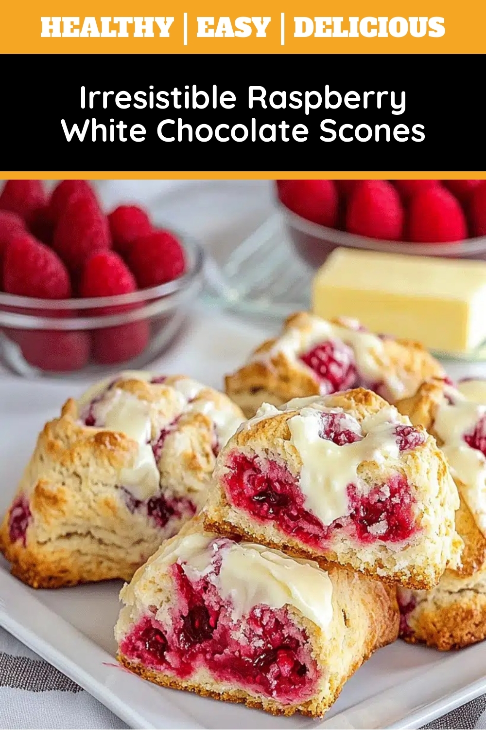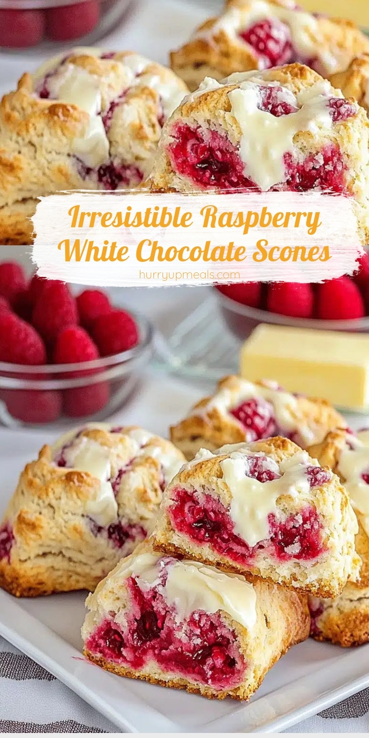 Buttery, tender scones bursting with sweet raspberries and creamy white chocolate chunks, perfect for breakfast or afternoon tea.