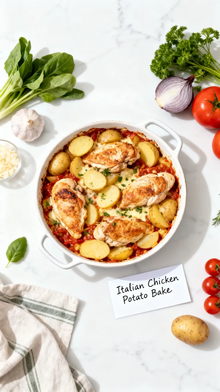 There’s something magical about a sheet pan dinner where everything roasts together, and this Italian Chicken Potato Bake delivers that magic every time. The aroma of Italian seasoning mingling with melted butter fills the kitchen as tender chicken and crispy-edged potatoes come together in one dish. After testing this a dozen times, I can confidently say the simplicity of throwing everything on a single pan—and getting a meal that tastes like you fussed for hours—makes this a weeknight hero.