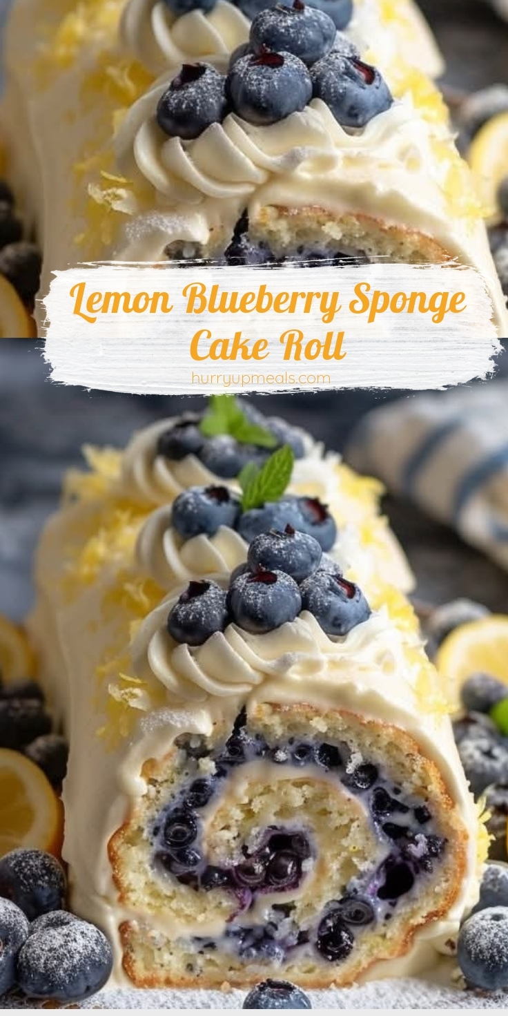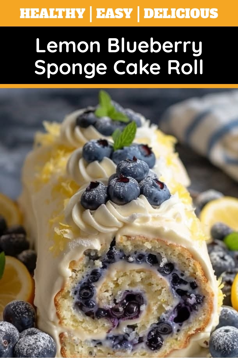 A light and fluffy sponge cake filled with tangy lemon cream and fresh blueberries, rolled into a beautiful dessert.