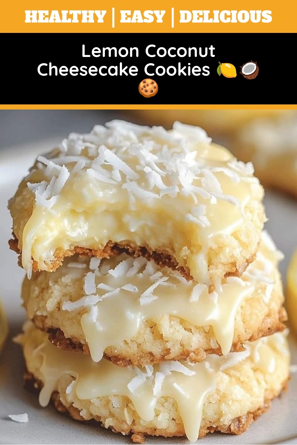 Lemon Coconut Cheesecake Cookies deliver a burst of bright, tangy lemon paired with the rich, creamy decadence of cheesecake, all wrapped in a tender, chewy coconut-infused cookie. The first bite reveals a crisp exterior that gives way to a soft, almost melt-in-your-mouth center, thanks to the perfect balance of cream cheese and butter. Fragrant lemon zest and juice cut through the richness, creating a refreshing contrast, while shredded coconut adds subtle sweetness and a delicate crunch. Each cookie feels like a mini celebration of flavors, with the creamy cheesecake element blending seamlessly into the dough. The aroma alone is irresistible, as the citrusy brightness of lemon mingles with the toasty, tropical notes of coconut. Because the ingredients work in harmony, every bite of Lemon Coconut Cheesecake Cookies feels indulgent yet balanced, making them impossible to resist.
