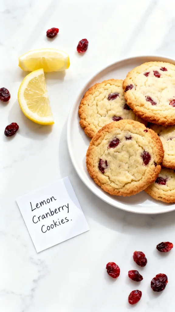 - Create a festive cookie platter by arranging these lemon cranberry cookies alongside shortbread and gingerbread.
