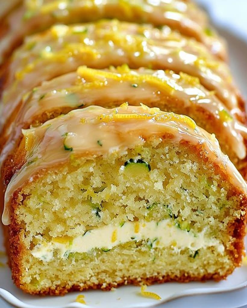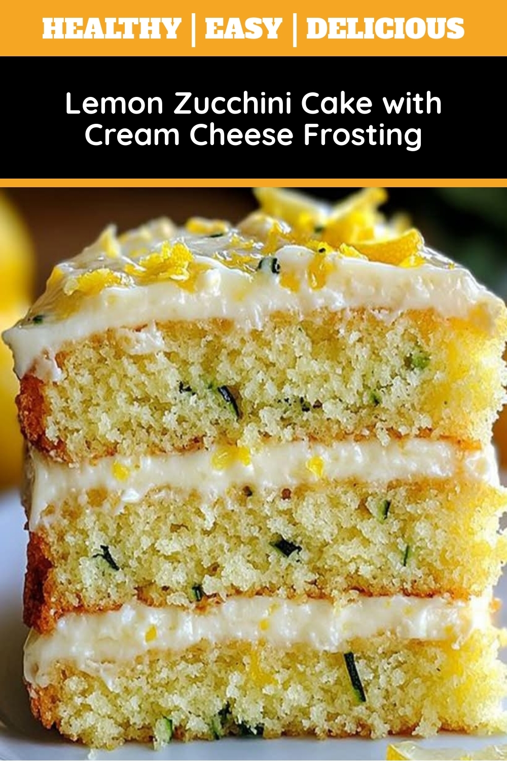 A moist and flavorful zucchini cake infused with fresh lemon zest and topped with creamy cream cheese frosting.