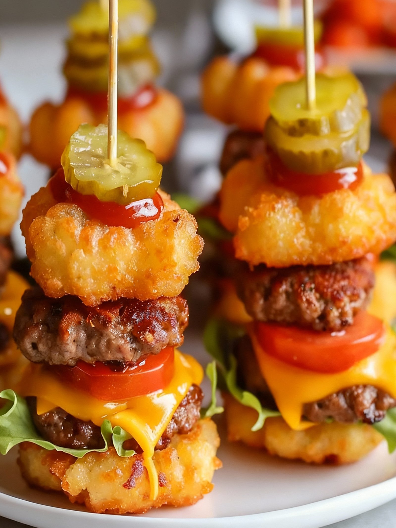 These Mini Tater Tot Cheeseburgers combine crispy potato exteriors with juicy, seasoned beef patties and melty cheese for an irresistible handheld appetizer.